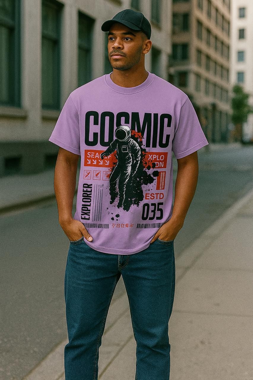 “Cosmic Explorer 035” Lavender Oversized Tee – 240 gsm