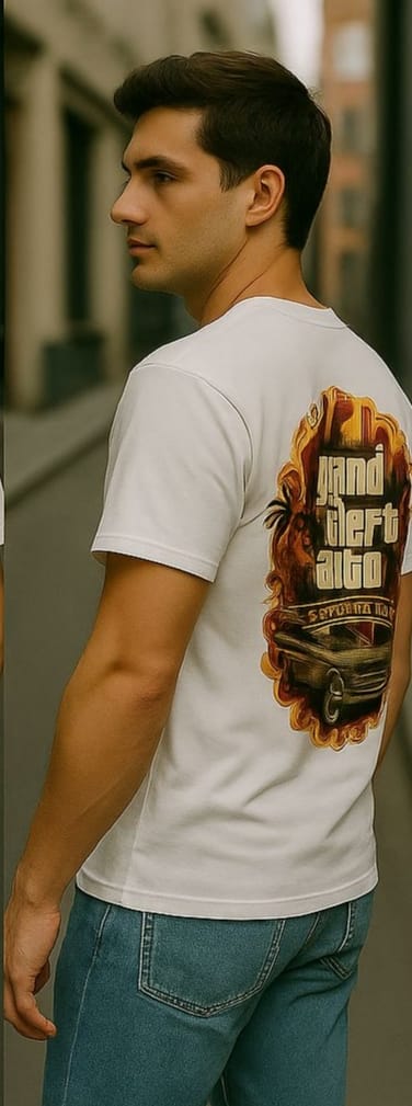 Step into streetwear luxury with our **White Oversized GTA Edition T-Shirt**, made from **240 GSM premium French Terry cotton** for a rich, structured feel. Designed for comfort and attitude, this piece features a **bold GTA-inspired graphic on the back** and a **minimal emblem on the front left chest**, blending statement design with clean aesthetics.