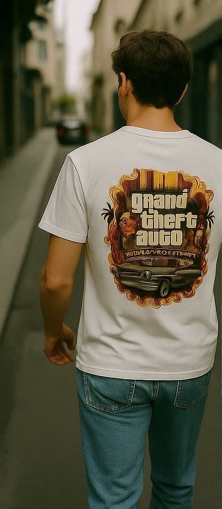* **Back:** Striking **GTA-inspired artwork** that captures the street essence and freedom of expression.
