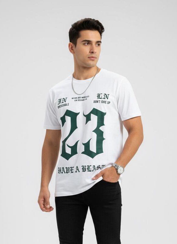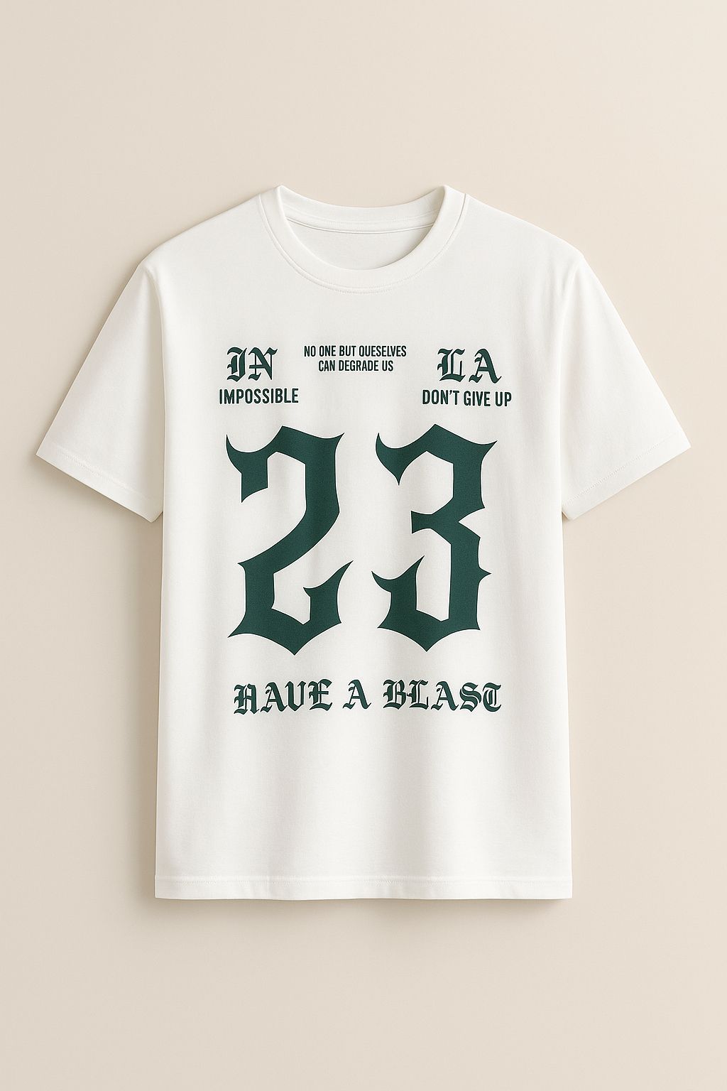 Push limits and own your confidence with the **“Don’t Give Up 23” Round Neck T-Shirt** — a bold statement piece made for those who never back down. Crafted from **180 GSM premium French Terry cotton**, this white tee offers a soft, breathable, and durable feel, giving you all-day comfort with a clean streetwear look.