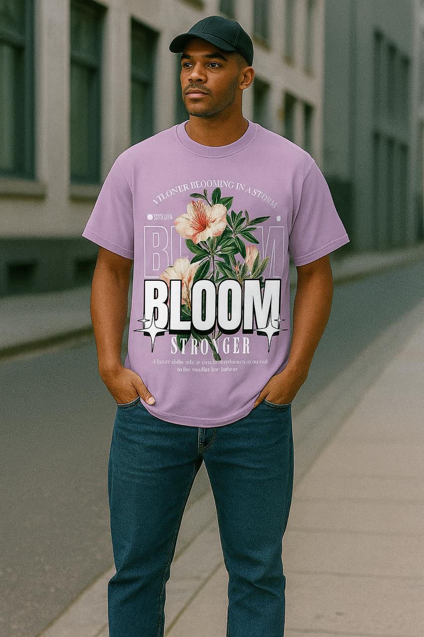 The elegant floral artwork combined with bold “BLOOM” typography creates a powerful visual mood, representing rising through adversity and becoming stronger with every season of life. A perfect blend of streetwear + aesthetic fashion in one statement piece.