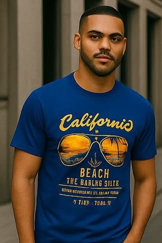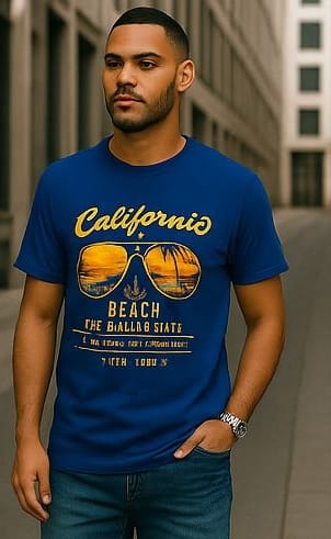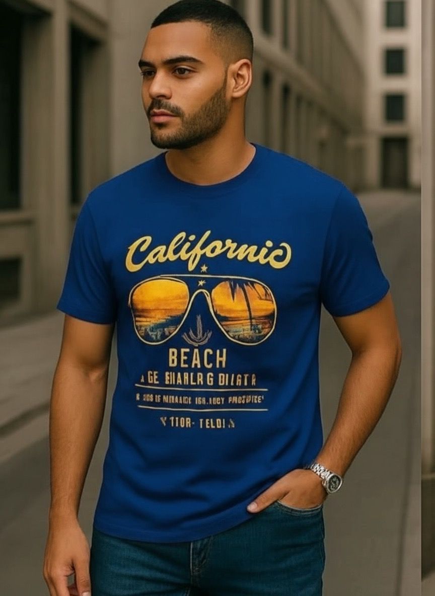 Featuring a **bold DTF front print of “California”**, this T-shirt brings the laid-back, sunny vibe of the West Coast wherever you go. With its **soft texture**, **breathable fabric**, and **classic round neckline**, it’s the perfect pick for casual days, outings, or relaxed streetwear looks.