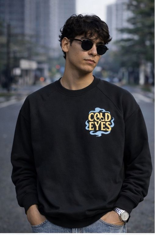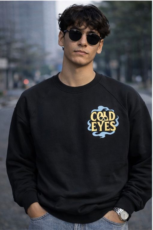 Designed in a classic black color, the sweatshirt features the signature COLD EYES winter artwork, applied using premium DTF printing for sharp details, rich colors, and superior longevity. The clean front branding and striking back graphic make it a versatile piece—ideal for casual streetwear looks or layering during colder days.