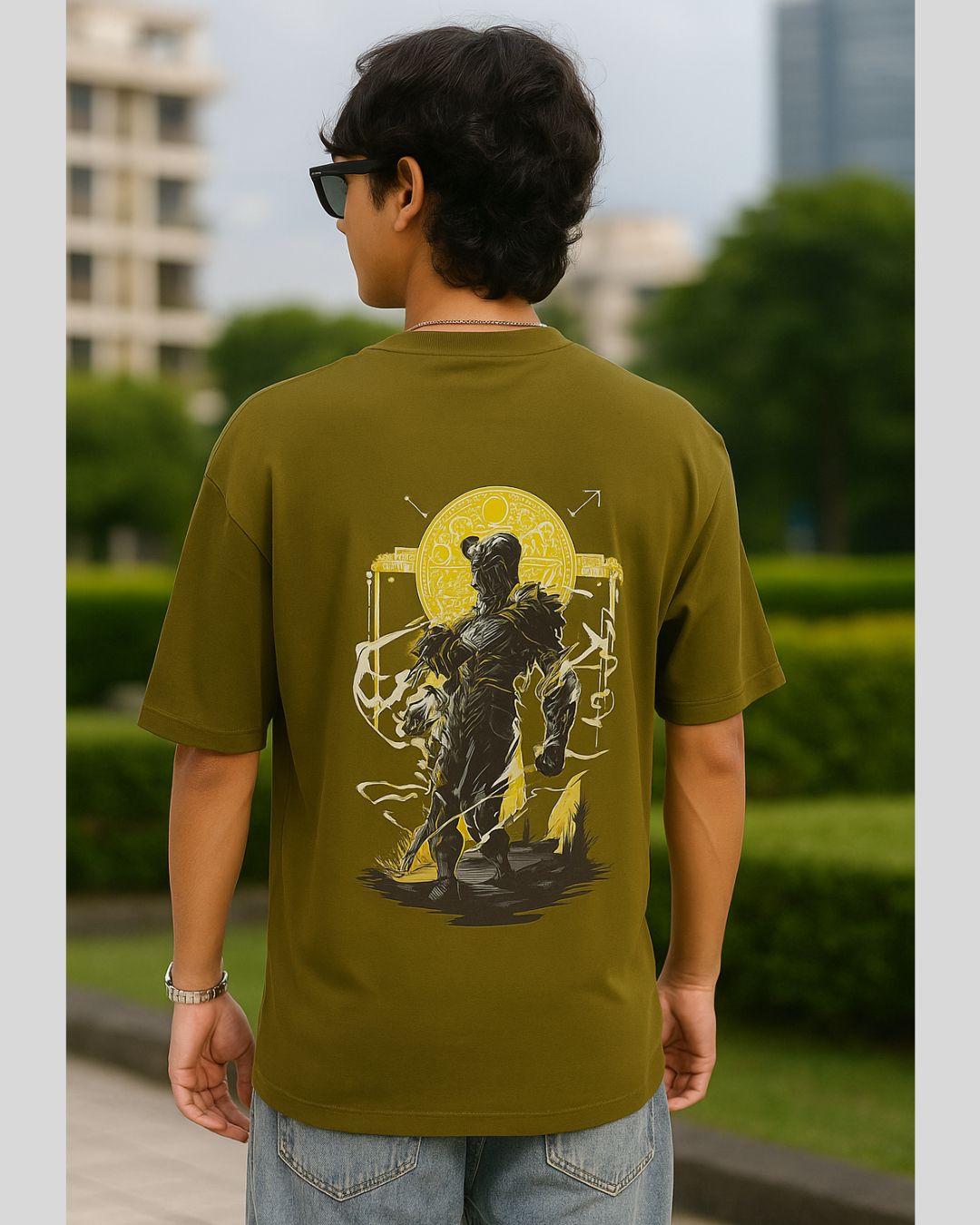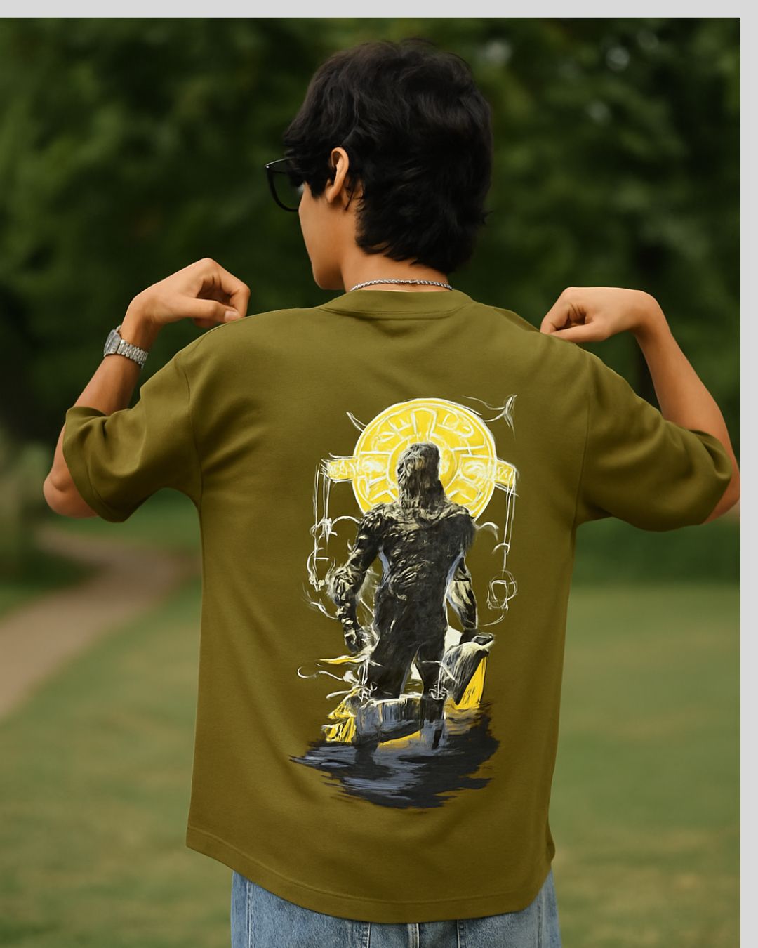 Designed in a rich olive green shade, this tee features a **high-quality DTF print** that celebrates strength and legacy. The oversized fit provides a relaxed streetwear look that pairs effortlessly with joggers, cargos, or denim.
